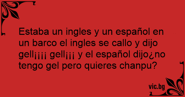 Estaba un ingles y un español en un barco el ingles se callo y dijo gell¡¡¡¡ gell¡¡¡ y el español dijo¿no tengo gel pero quieres chanpu?