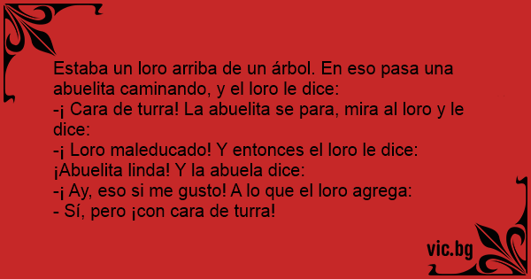 -¡ Loro maleducado! Y entonces el loro le dice: ¡Abuelita linda! Y la abuela dice: