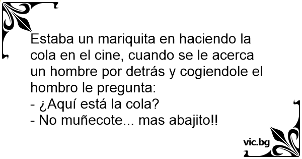 Estaba un маriquiта en haciendo la cola en el cine, cuando se le acerca un hombre por detrás y cogiendole el hombro le pregunta: