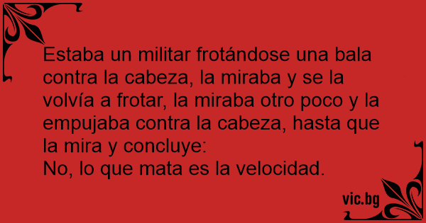 Estaba un militar frotándose una bala contra la cabeza, la miraba y se la volvía a frotar, la miraba otro poco y la empujaba contra la cabeza, hasta que la mira y concluye: