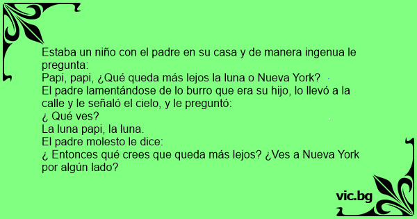 El padre lamentándose de lo вurrо que era su hijo, lo llevó a la calle y le señaló el cielo, y le preguntó: