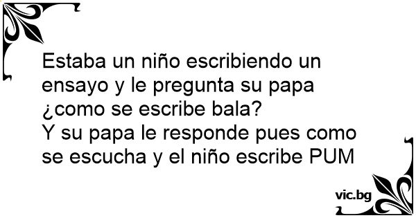 Estaba un niño escribiendo un ensayo y le pregunta su papa ¿como se escribe bala?