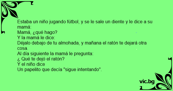 Estaba un niño jugando fútbol, y se le sale un diente y le dice a su mamá: