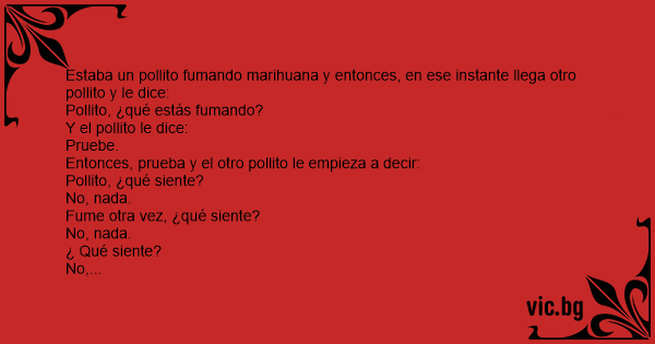 Estaba un pollito fumando marihuana y entonces, en ese instante llega otro pollito y le dice: