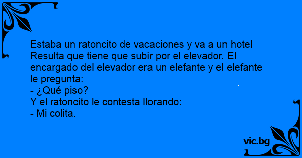 Resulta que tiene que subir por el elevador. El encargado del elevador era un elefante y el elefante le pregunta: