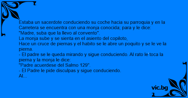 - El padre se le queda mirando y sigue conduciendo. Al rato le toca la pierna y la monja le dice: