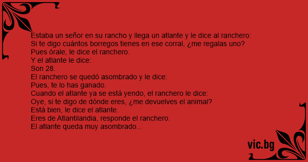 Estaba un señor en su rancho y llega un atlante y le dice al ranchero: