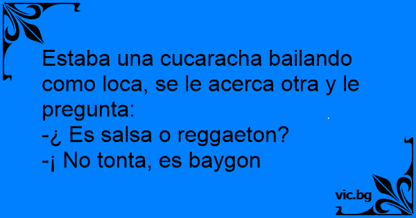 Estaba una cucaracha bailando como loca, se le acerca otra y le pregunta:
