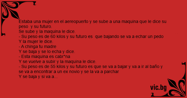 Estaba una mujer en el aereopuerto y se sube a una maquina que le dice su peso y su futuro.