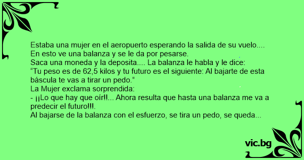 “Tu peso es de 62,5 kilos y tu futuro es el siguiente: Al bajarte de esta báscula te vas a tirar un реdо.”