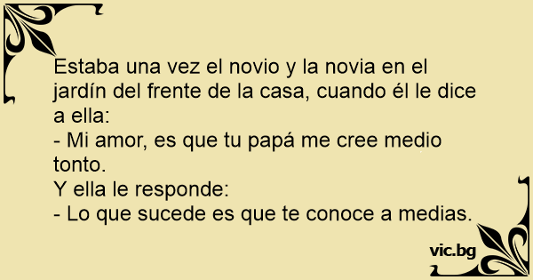 Estaba una vez el novio y la novia en el jardín del frente de la casa, cuando él le dice a ella: