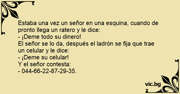 Estaba una vez un señor en una esquina, cuando de pronto llega un ratero y le dice: