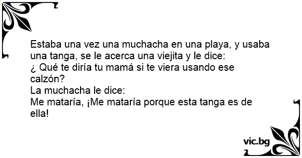 Estaba una vez una muchacha en una playa, y usaba una tanga, se le acerca una viejita y le dice: