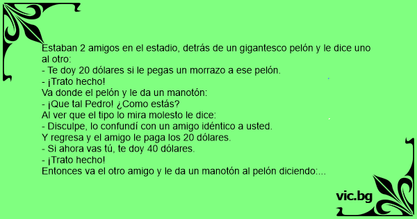 - Te doy 20 dólares si le pegas un morrazo a ese pelón.