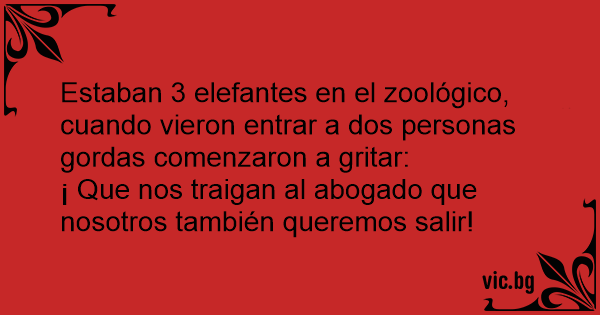 Estaban 3 elefantes en el zoológico, cuando vieron entrar a dos personas gordas comenzaron a gritar:
