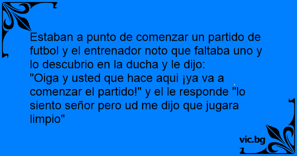 Estaban a punto de comenzar un partido de futbol y el entrenador noto que faltaba uno y lo descubrio en la ducha y le dijo: