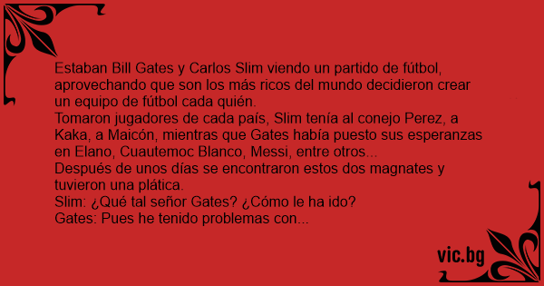 Estaban Bill Gates y Carlos Slim viendo un partido de fútbol, aprovechando que son los más ricos del mundo decidieron crear un equipo de fútbol cada quién.