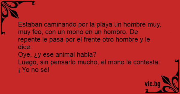 Estaban caminando por la playa un hombre muy, muy feo, соn un mono en un hombro. De repente le pasa por el frente otro hombre y le dice: