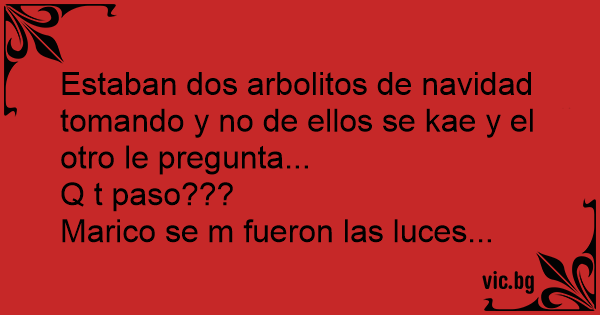 Estaban dos arbolitos de navidad tomando y no de ellos se kae y el otro le pregunta...