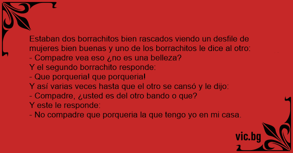 Estaban dos borrachitos bien rascados viendo un desfile de mujeres bien buenas y uno de los borrachitos le dice al otro: