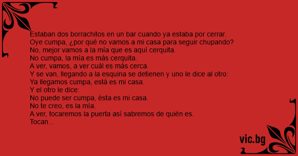 Estaban dos borrachitos en un bar cuando ya estaba por cerrar.