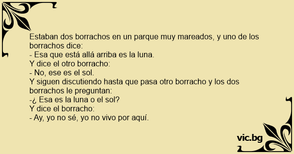 Y siguen discutiendo hasta que pasa otro borracho y los dos borrachos le preguntan: