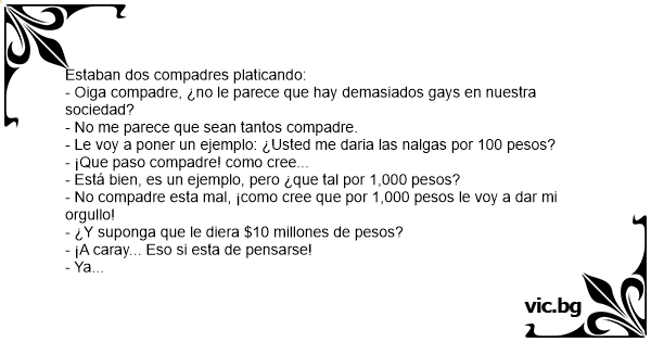 - No compadre esta mal, ¡como cree que por 1,000 pesos le voy a dar mi orgullo!