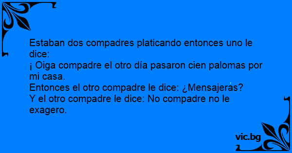 ¡ Oiga compadre el otro día pasaron cien palomas por mi casa.