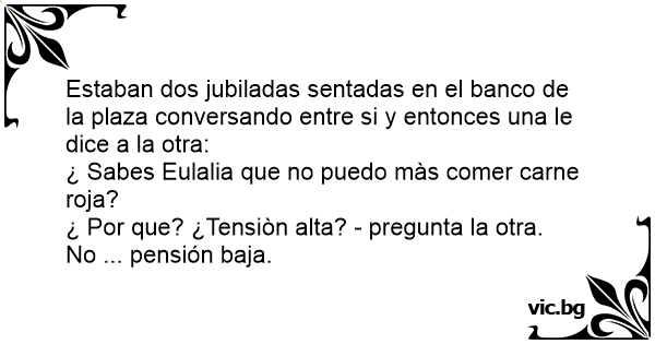 Estaban dos jubiladas sentadas en el banco de la plaza conversando entre si y entonces una le dice a la otra: