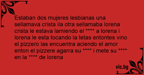 Estaban dos mujeres lesbianas una sellamava crista ila otra sellamaba lorena crista le estava lamiendo el **** a lorena i lorena le esta tocando la tetas entontes vino el pizzero las encuentra aciendo el amor enton el pizzere agarra su **** i mete su **** en la **** de lorena