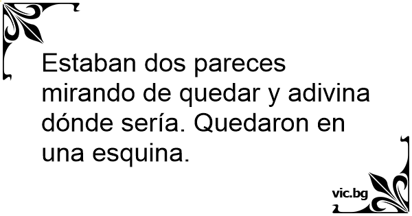 Estaban dos pareces mirando de quedar y adivina dónde sería. Quedaron en una esquina.