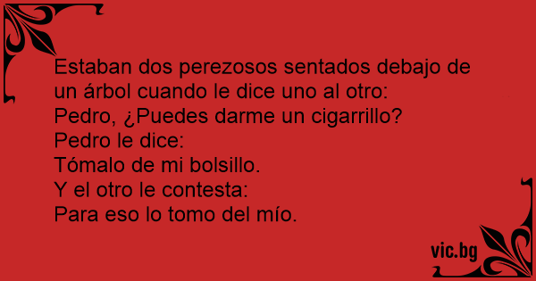 Estaban dos perezosos sentados debajo de un árbol cuando le dice uno al otro: