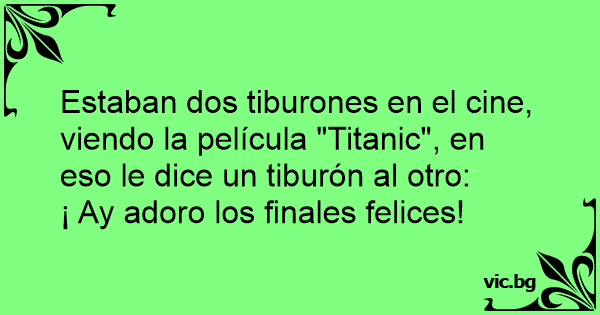 Estaban dos tiburones en el cine, viendo la película "Titanic", en eso le dice un tiburón al otro: