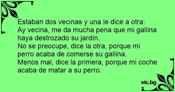 No se preocupe, dice la otra, porque mi реrrо acaba de comerse su gallina.