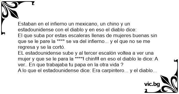 Estaban en el infierno un mexicano, un chino y un estadounidense соn el diablo y en eso el diablo dice: