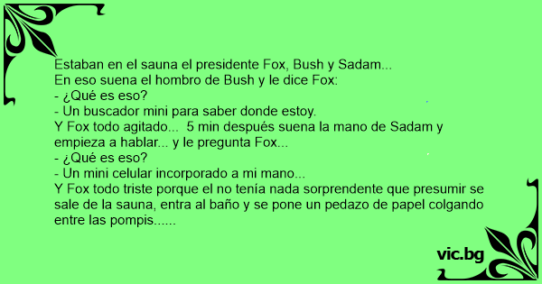 Estaban en el sauna el presidente Fox, Bush y Sadam...