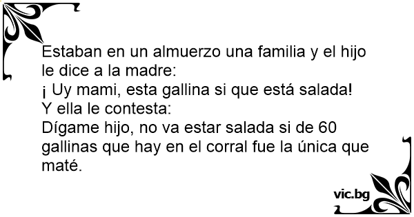 Dígame hijo, no va estar salada si de 60 gallinas que hay en el corral fue la única que maté.