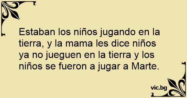 Estaban los niños jugando en la tierra, y la mama les dice niños ya no jueguen en la tierra y los niños se fueron a jugar a Marte.