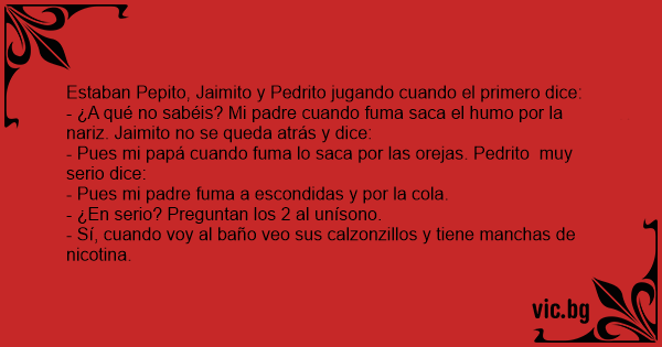 - Pues mi papá cuando fuma lo saca por las orejas. Pedrito muy serio dice: