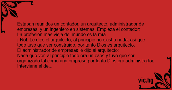 Estaban reunidos un contador, un arquitecto, administrador de empresas, y un ingeniero en sistemas. Empieza el contador: