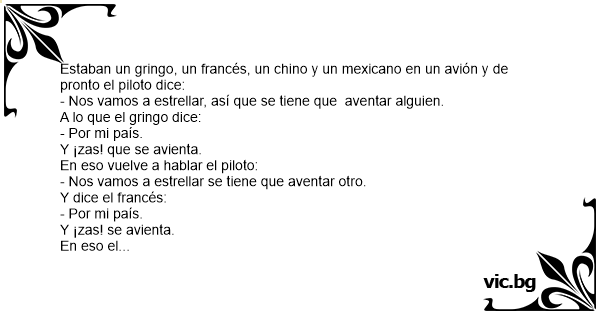 Estaban un gringо, un francés, un chino y un mexicano en un avión y de pronto el piloto dice: