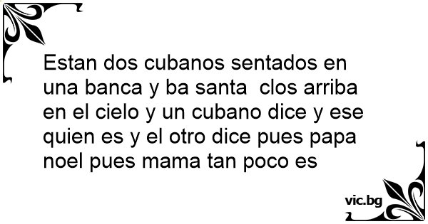 Estan dos cubanos sentados en una banca y ba santa clos arriba en el cielo y un cubano dice y ese quien es y el otro dice pues papa noel pues mama tan poco es