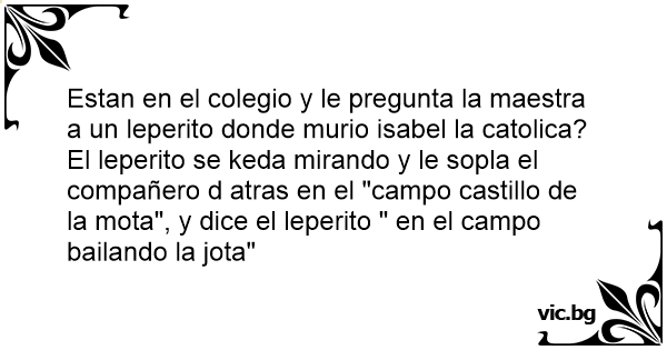 Estan en el colegio y le pregunta la maestra a un leperito donde murio isabel la catolica?