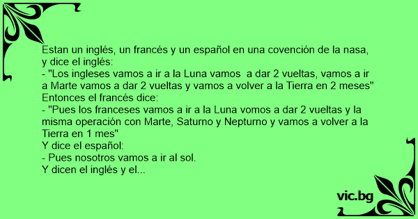 Estan un inglés, un francés y un español en una covención de la nasa, y dice el inglés: