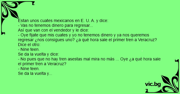 Estan unos cuates mexicanos en E. U. A. y dice:
