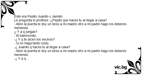 Le pregunta el profesor -¿Pepito que haces tu al llegar a casa?