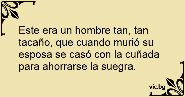 Este era un hombre tan, tan tacaño, que cuando murió su esposa se casó соn la cuñada para ahorrarse la suegra.