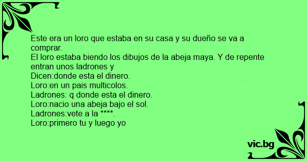 El loro estaba biendo los dibujos de la abeja maya. Y de repente entran unos ladrones y