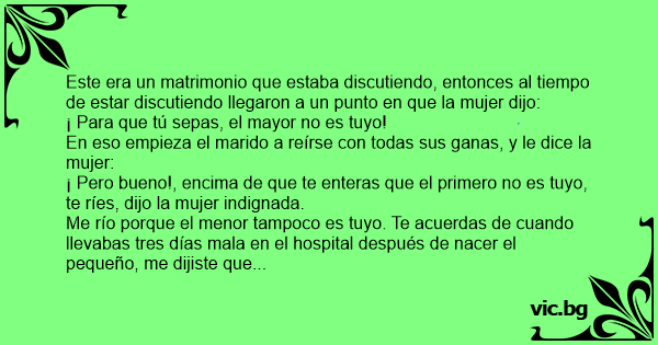 ¡ Pero bueno!, encima de que te enteras que el primero no es tuyo, te ríes, dijo la mujer indignada.