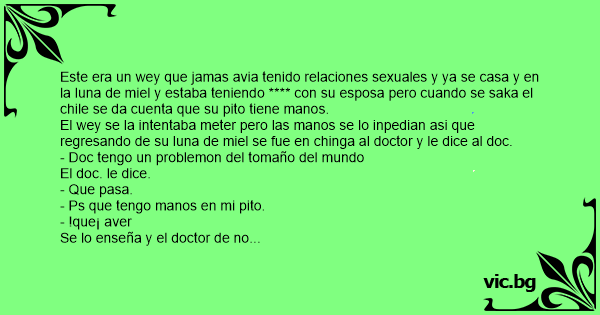 El wey se la intentaba meter pero las manos se lo inpedian asi que regresando de su luna de miel se fue en chinga al doctor y le dice al doc.